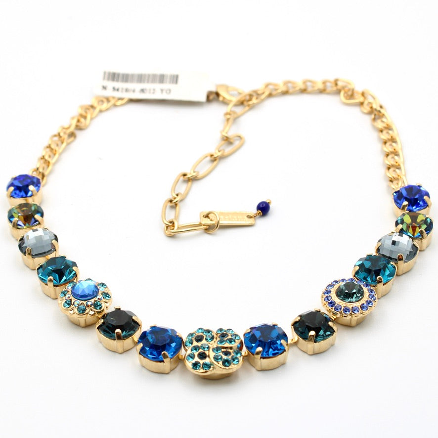 This gorgeous statement necklace features classic Mariana elements with a beautiful clover shape in the center.