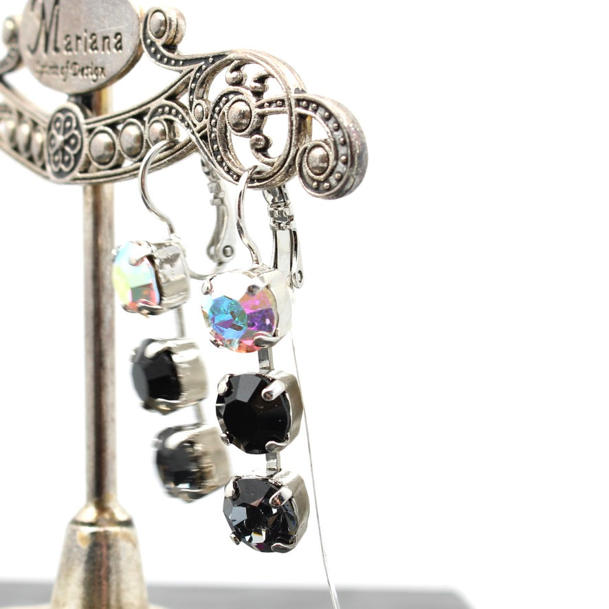 Tuxedo Medium Three Stone Earrings in Rhodium
